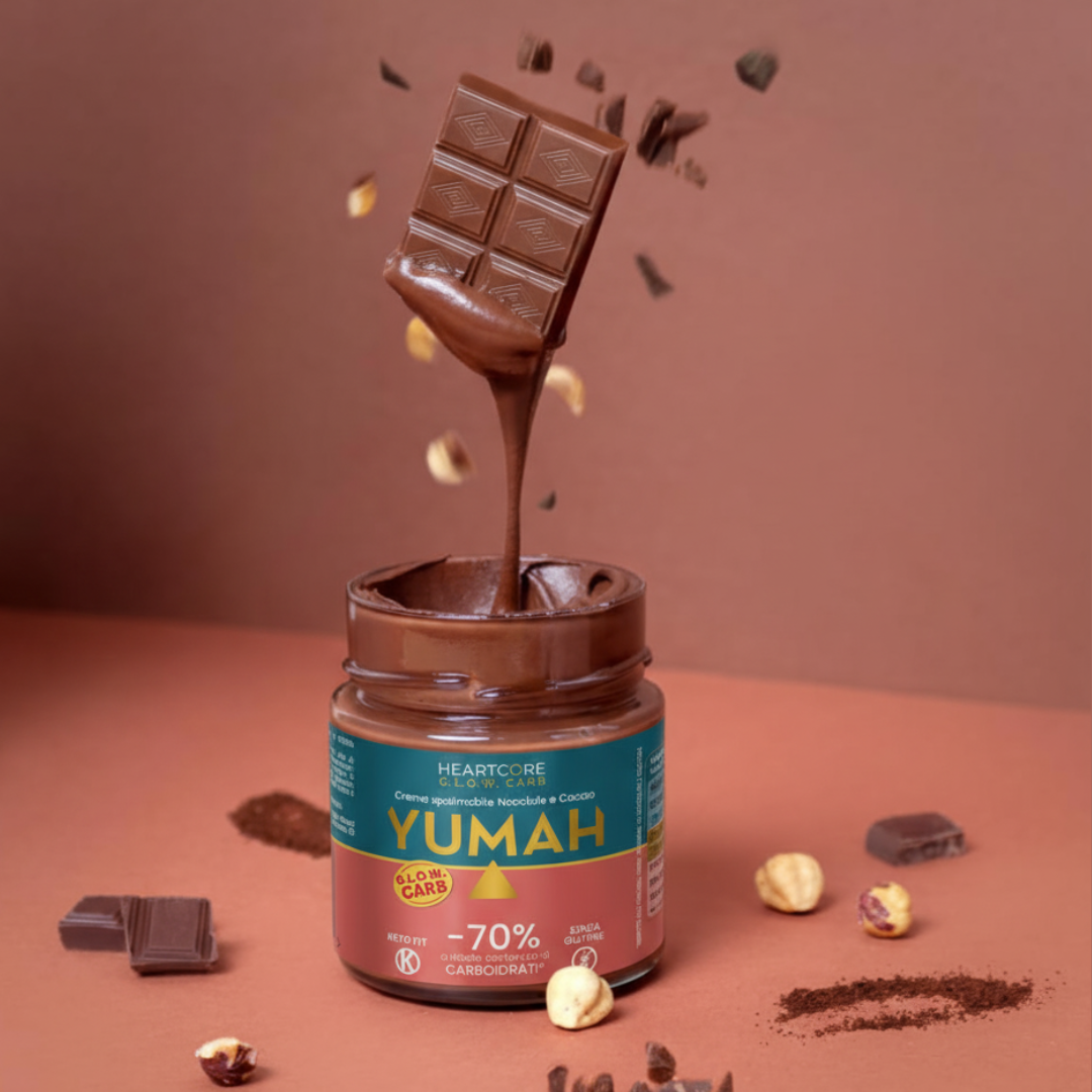 YUMAH è la crema talmente cremosa e intensa che non sembra possibile abbia il 70% di carboidrati in meno rispetto alle creme tradizionali. Solo 16g di carboidrati per 100g.