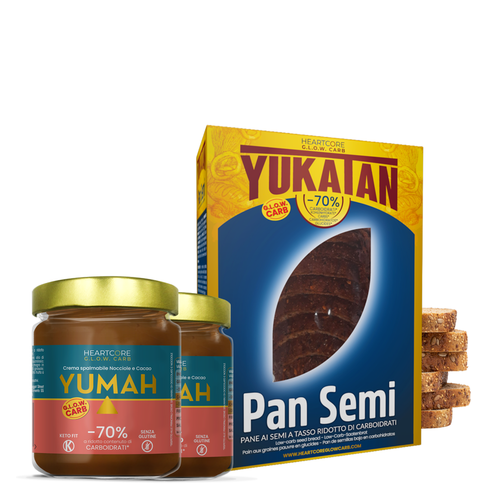 YUKATAN PAN SEMI è il pane che mancava. Con il 70% di carboidrati in meno rispetto al pane tradizionale, contiene solo: 5g di carboidrati per 100g e 1,2g di zuccheri per 100g. Perfetto da: tostare, farcire dolce o salato, usare come base per colazioni proteiche, accompagnare i pasti senza picchi glicemici.